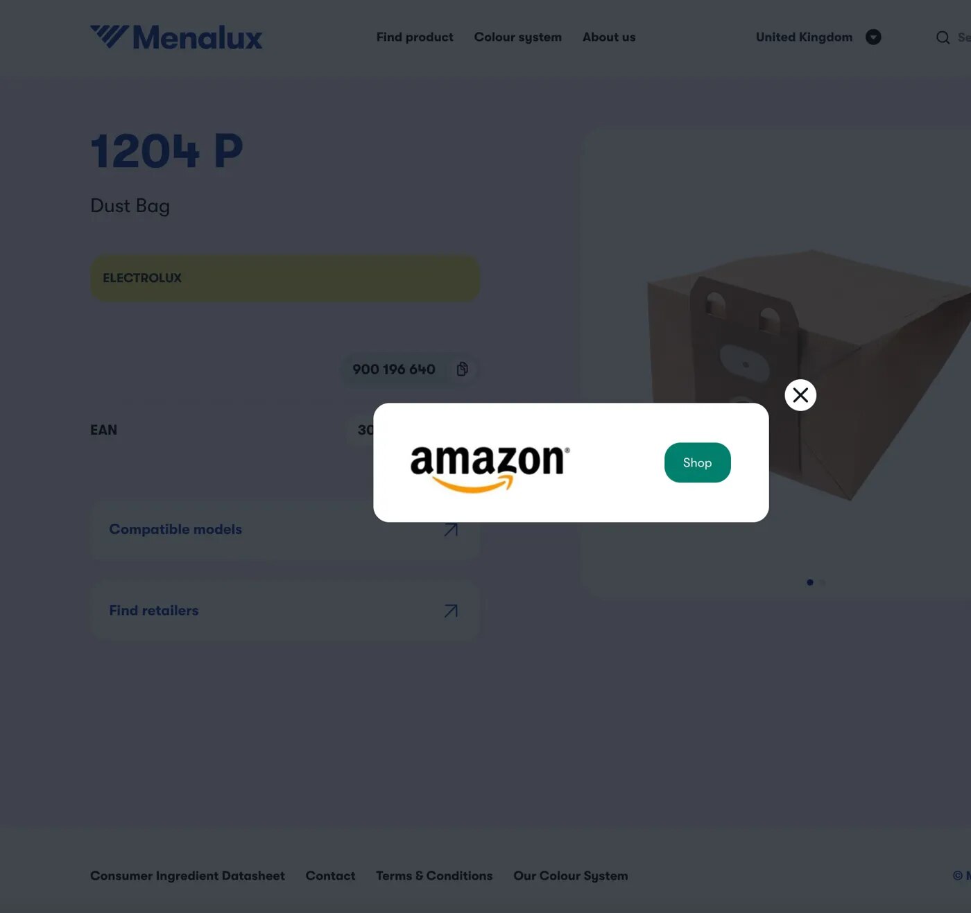 Usa el buscador del sitio web de Menalux. Selecciona la categoría y seguidamente la marca, la serie y el modelo de tu aspiradora. Pulsa en el producto y verás el color que le corresponde y la referencia de 4 dígitos de la bolsa.